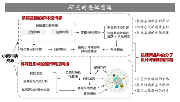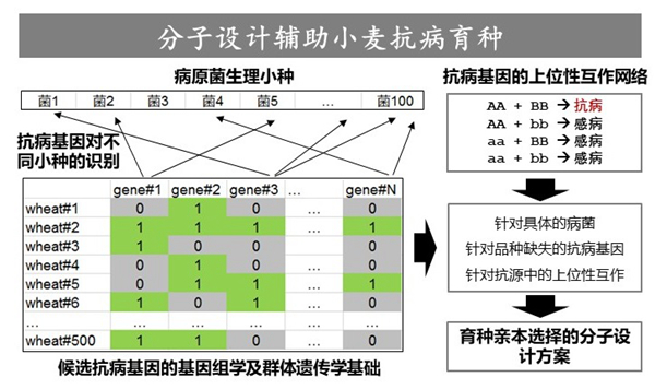 3.分子设计辅助小麦抗病育种:本课题组的长远研究目标是将生物组学大数据的研究结果与小麦抗病育种相结合,探索抗病新品 种的分子设计与创制新策略。