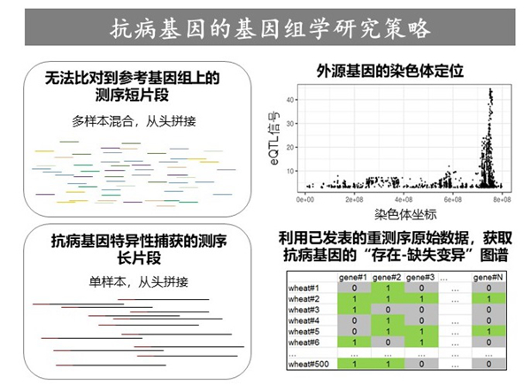 1.抗病基因的基因组学研究策略:抗病基因进化速度快,在不同小麦品种中的变异程度极大。本研究组将采用基因组学的研究策略构建小麦抗病基因的泛基因组图谱。