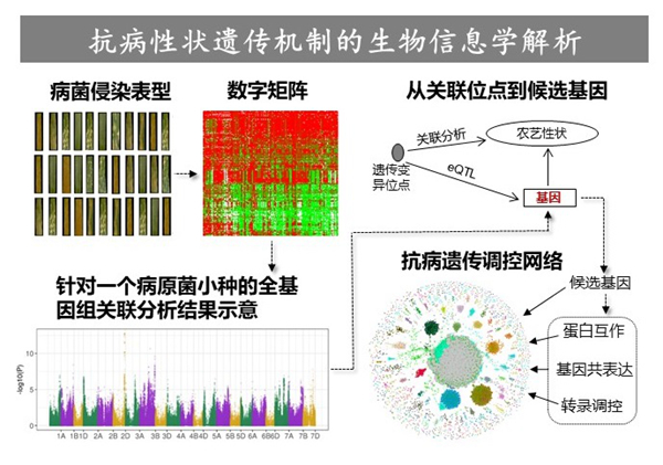 2.抗病性状遗传机制的生物信息学解析:本研究组将针对我国小麦的重要病害,利用基因组学、生物信息学以及系统生物学手段,构建抗病性状的遗传调控网络。通过网络拓扑结构分析、机器学习等方法挖掘控制抗病性状的关键基因。